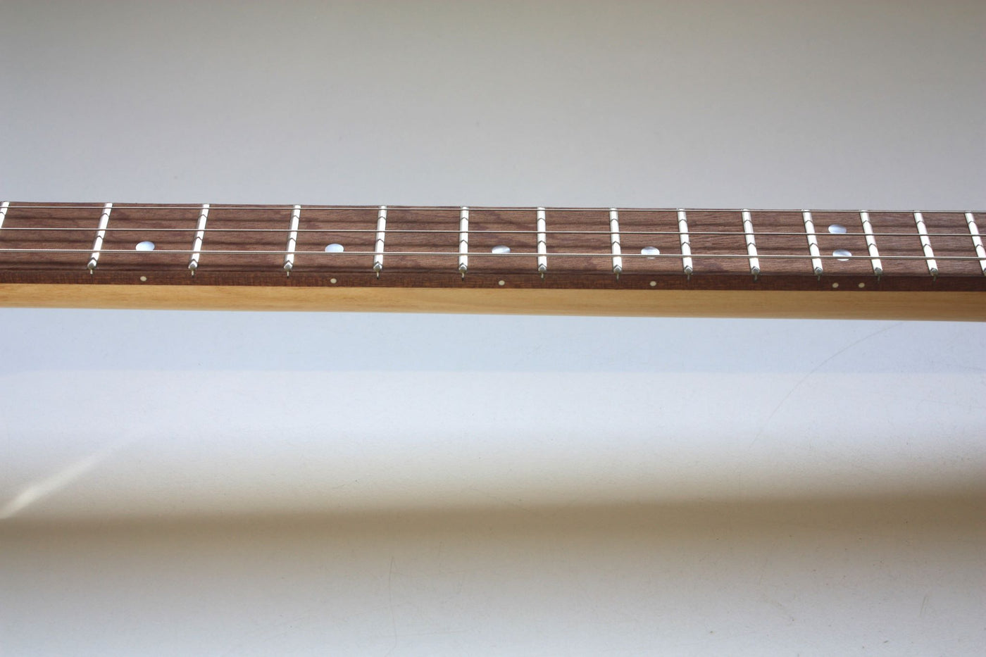 Traditional "Romeo & Julieta" cigar box with Meranti neck -LEFT HANDED Blackwood Tek fretboard with Van Gent super jumbo frets. White position dots and white edge dot markers, machine screw nut. Our guitar necks are fully profiled by hand using traditional methods for great playability and comfortable in-the-hand feel. Finished in traditiona...