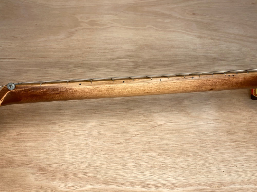 Traditional "Romeo & Julieta" cigar box with Meranti neck -LEFT HANDED Blackwood Tek fretboard with Van Gent super jumbo frets. White position dots and white edge dot markers, machine screw nut. Our guitar necks are fully profiled by hand using traditional methods for great playability and comfortable in-the-hand feel. Finished in traditiona...