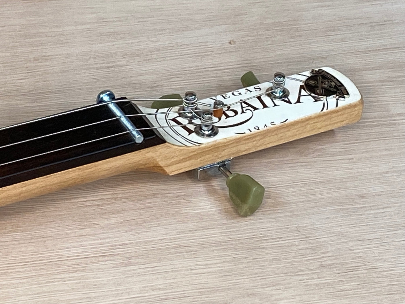 A beautiful and bright wooden "H.Upmann" cigar box, matching chrome hardware with a light neck has made a great looking cigar box guitar. Beechwood through neck with heel reinforcement, environmentally friendly Blackwood Tek fretboard with Van Gent jumbo frets. White position dots and white edge dot markers with a machine screw nut. Our guitar n...